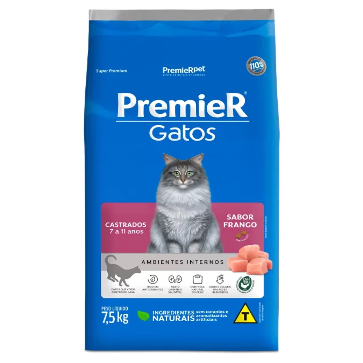 PremieR Gatos Castrados 7 a 11 anos – Frango é um alimento Super Premium que faz parte da linha PremieR Gatos Castrados, uma linha de alimentos especialmente desenvolvida para garantir o máximo em saúde e vitalidade aos gatos através de cuidados nutricionais específicos pós castração.